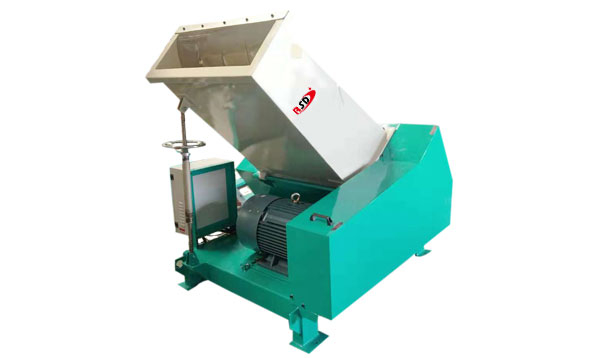 喂料斗與機(jī)身通過鉸鏈與機(jī)身連接,安裝有氣動(dòng)翻開裝置,能向上翻開。方便對粉碎室進(jìn)行清潔工作;