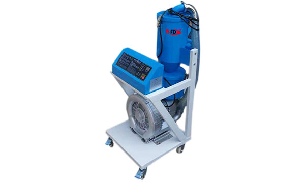 真空吸料機(jī)中裝有壓縮空氣反吹裝置,每次放料時(shí),壓縮空氣脈沖反吹過濾器,把吸附于過濾器表面的粉末打落下來,以保證吸料能正常運(yùn)行。