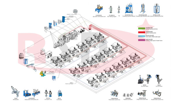 1、塑膠原料存儲(chǔ)、除濕干燥、計(jì)量混合到輸送到各個(gè)成型機(jī)使用;